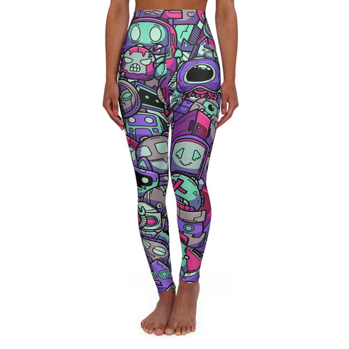 Women's High Waisted Yoga Leggings - "Robot Doodles"